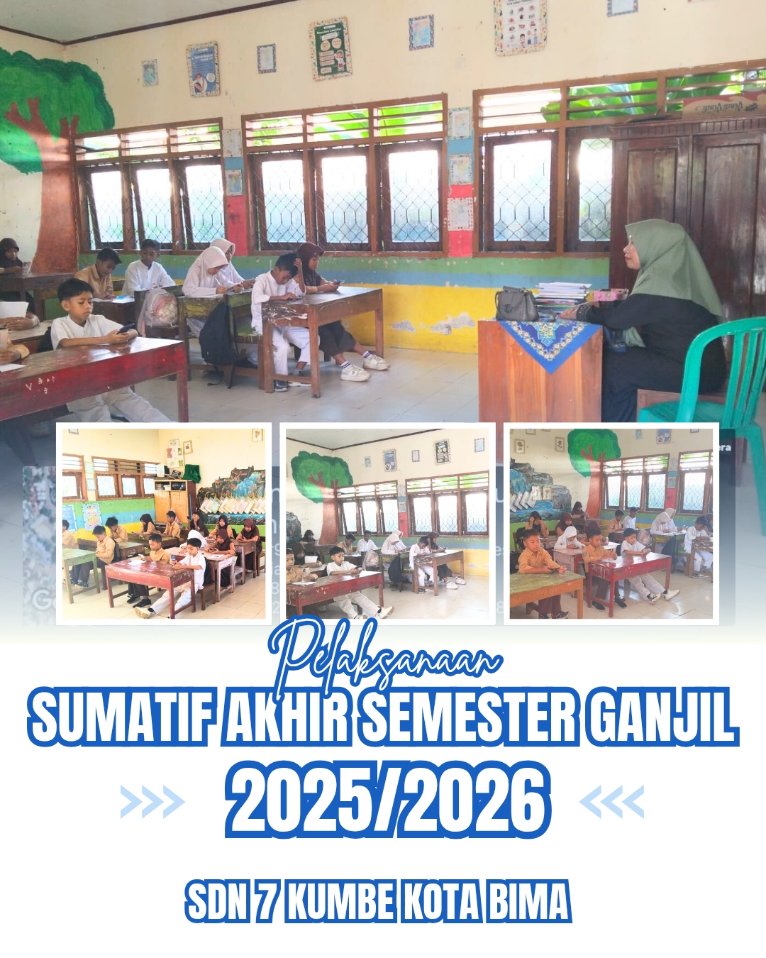 Kota Bima, 12 Desember 2025 - SDN 7 Kumbe melaksanakan kegiatan Sumatif Akhir Semester (SAS) Ganjil Tahun Pelajaran 2025/2026 mulai pukul 07.30 hingga 11.00 WITA. Pelaksanaan yang berlangsung tertib dan kondusif ini diikuti seluruh peserta didik dari kelas 1 hingga kelas 6.