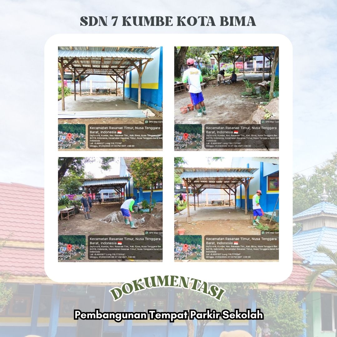 Kota Bima, 01 Maret 2026 - Dalam rangka meningkatkan kenyamanan dan ketertiban di lingkungan sekolah, Kepala SDN 7 Kumbe Kota Bima mengambil langkah nyata dengan menginisiasi pembangunan tempat parkir di area sekolah.