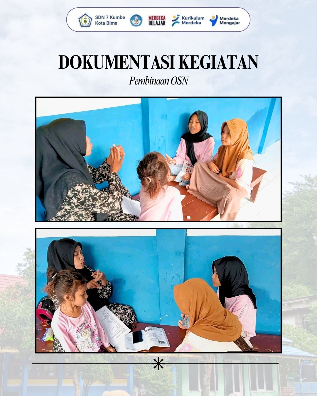 Kepala SDN 7 Kumbe Kota Bima menyampaikan bahwa kegiatan ini merupakan salah satu bentuk dukungan sekolah dalam mengembangkan potensi dan bakat siswa di bidang akademik. Melalui pembinaan yang terarah, diharapkan para siswa mampu meraih prestasi yang membanggakan serta mengharumkan nama sekolah di ajang OSN.