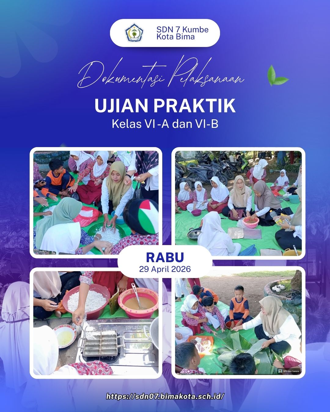 Kota Bima – SDN 7 Kumbe melaksanakan ujian praktik muatan lokal (mulok) bagi siswa kelas VI A dan VI B dengan mengangkat tema pelestarian kuliner tradisional khas Bima Mbojo. Kegiatan ini berlangsung dengan penuh antusias dan kreativitas dari para siswa.