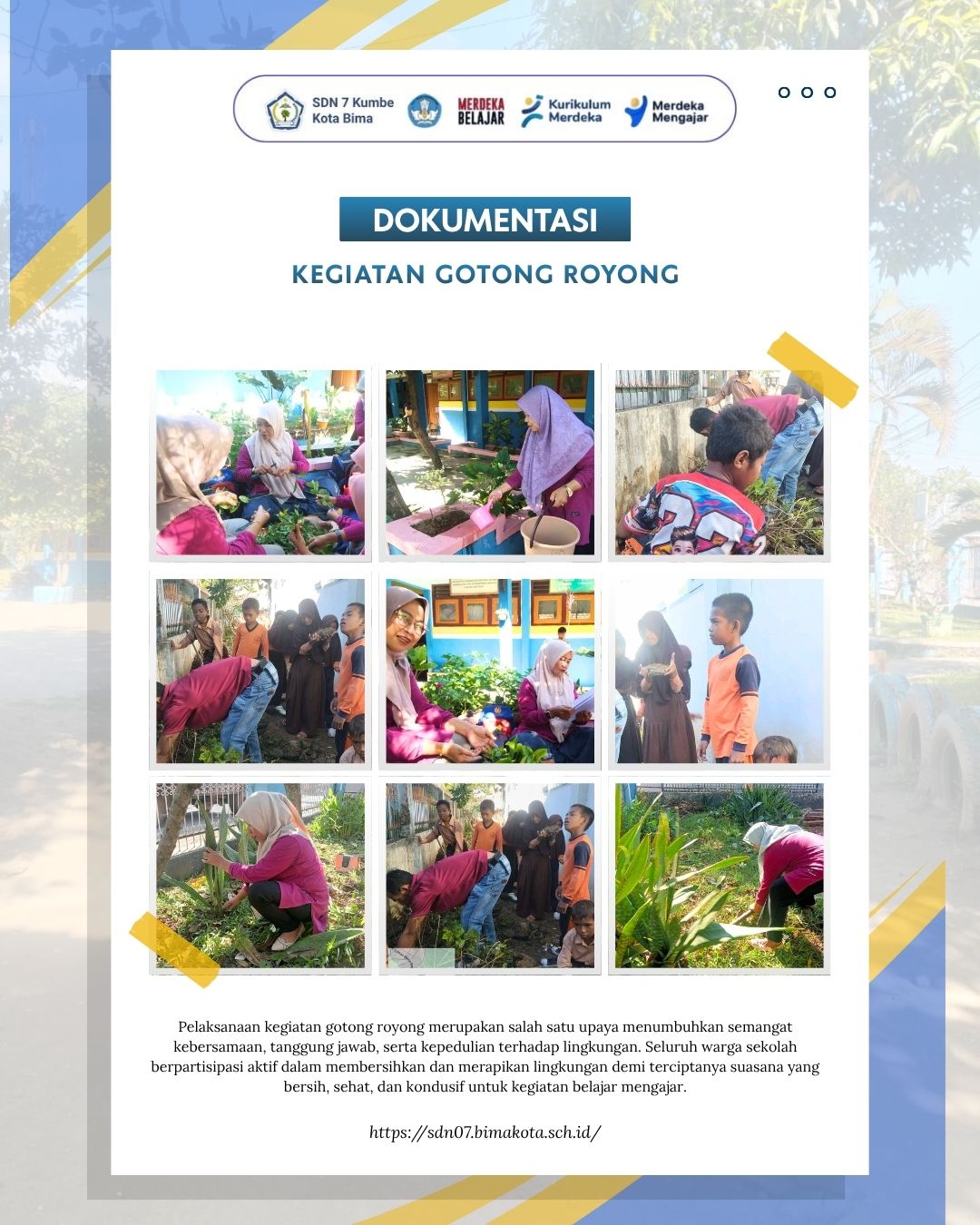 SDN 7 KUMBE KOTA BIMA MENJAGA LINGKUNGAN SEKOLAH TETAP BISA MELALUI GOTONG ROYONG BERSAMA